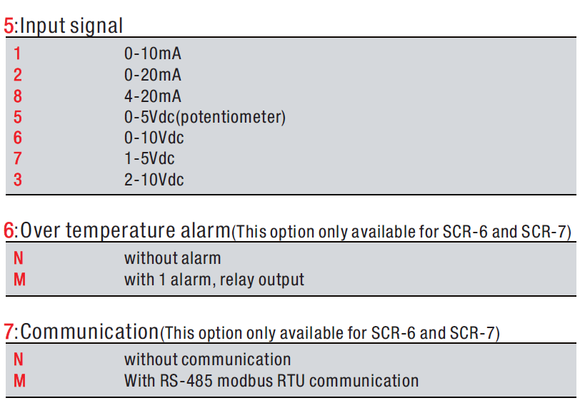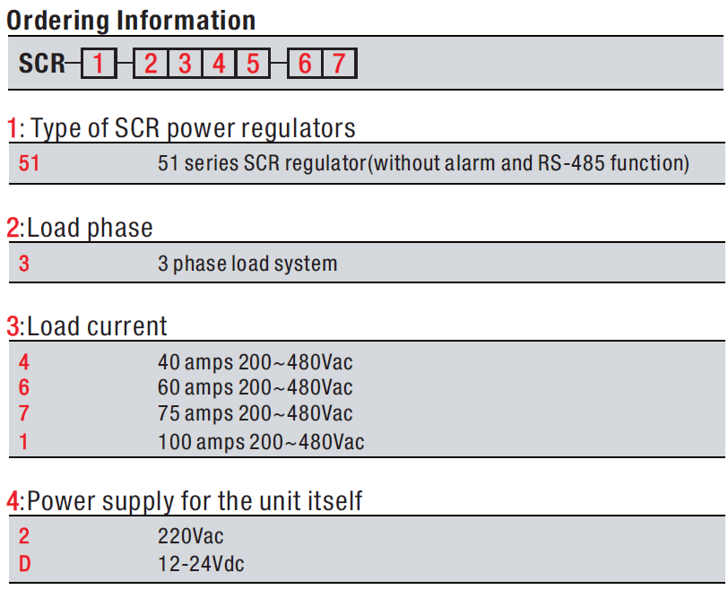 Ordering example : SCR-51-3428-NN ( SCR-51 series, 4-20mA input, 40 amps)