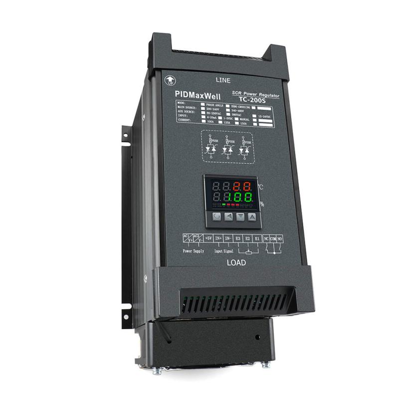 The Maxwell TC-200S Series is an industrial-grade, three-phase intelligent SCR (Silicon Controlled Rectifier) power regulator designed for precise, stepless control of resistive heating loads in demanding industrial environments. Manufactured by Maxwell Automation Technology Co., Ltd. under the PIDMaxWell brand, the TC-200S combines a fully digital control architecture with an integrated dual-row LED display, multi-function indicator LEDs, and a front-panel keypad, enabling operators to monitor process parameters and adjust output settings directly without external programming tools.