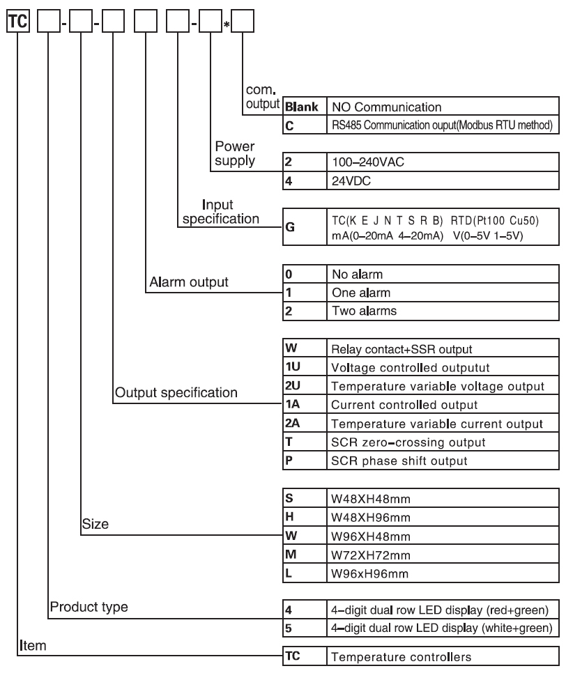 Standard version for this model is Relay+SSR Drive output, plus 1 alarm, if you want to order 48mm*48mm, Relay+SSR Drive output , 1 alarm , AC source controller, below is the correct model number
