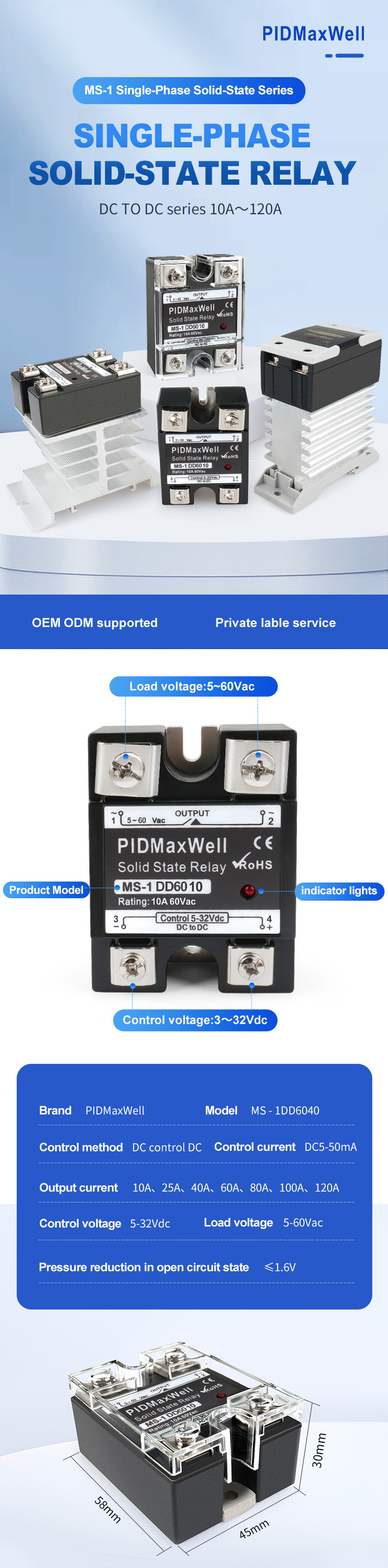 | MS-1DD6060 | 60A, 60VDC load, 5–32VDC control input |