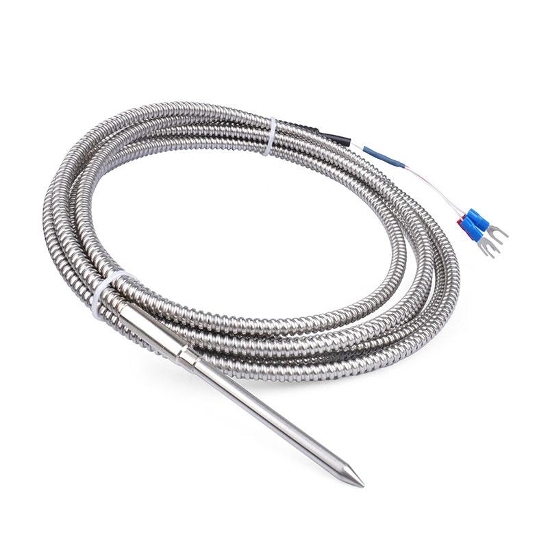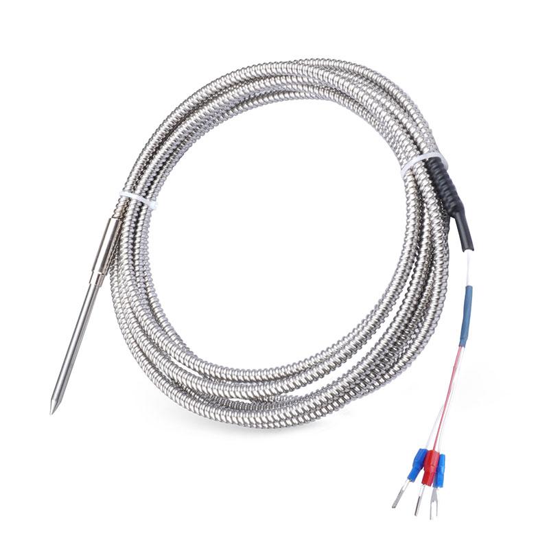 | PT100-5-5-100-N-3000-SS-300 | 5 mm dia., 100 mm length, 3 m SS braided cable, 300 °C — High-temperature industrial |