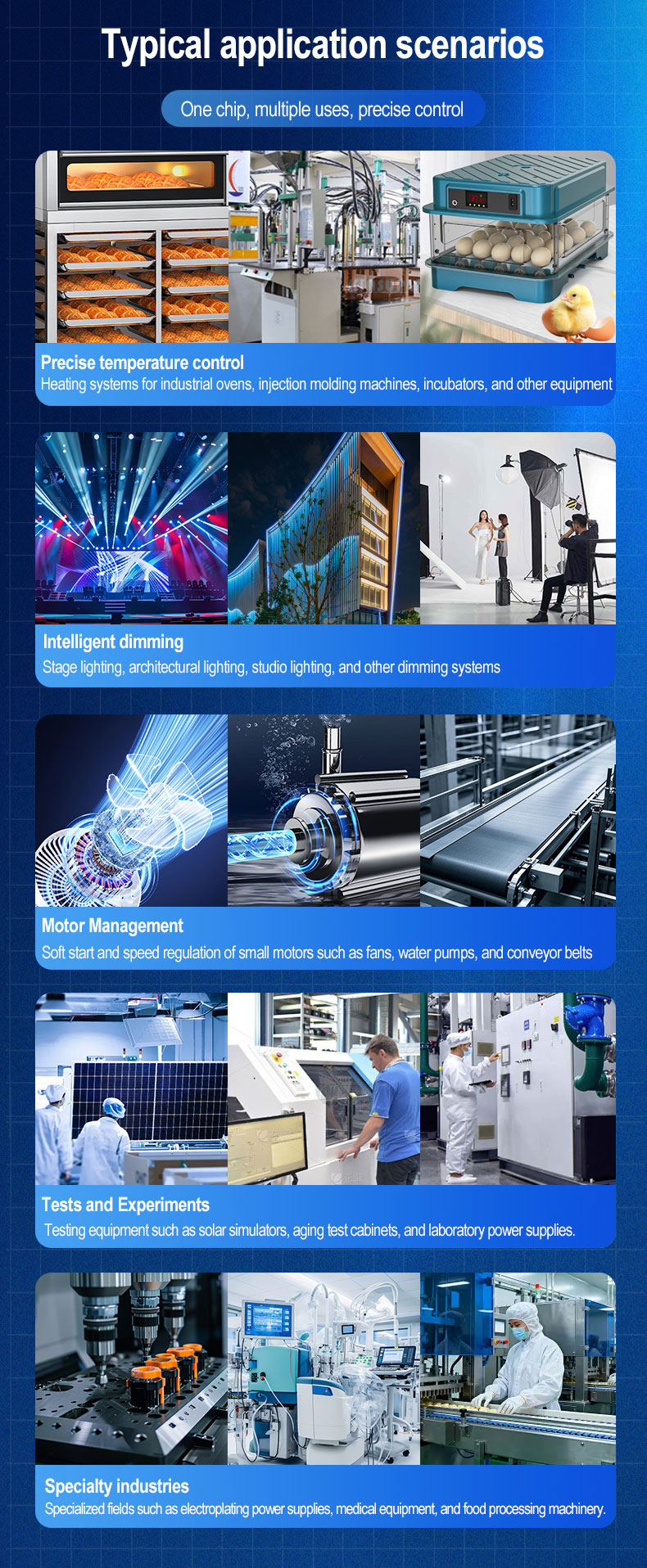 Highly effective for controlling both resistive heating elements (furnaces, ovens) and inductive loads (motors, transformers, fans). |